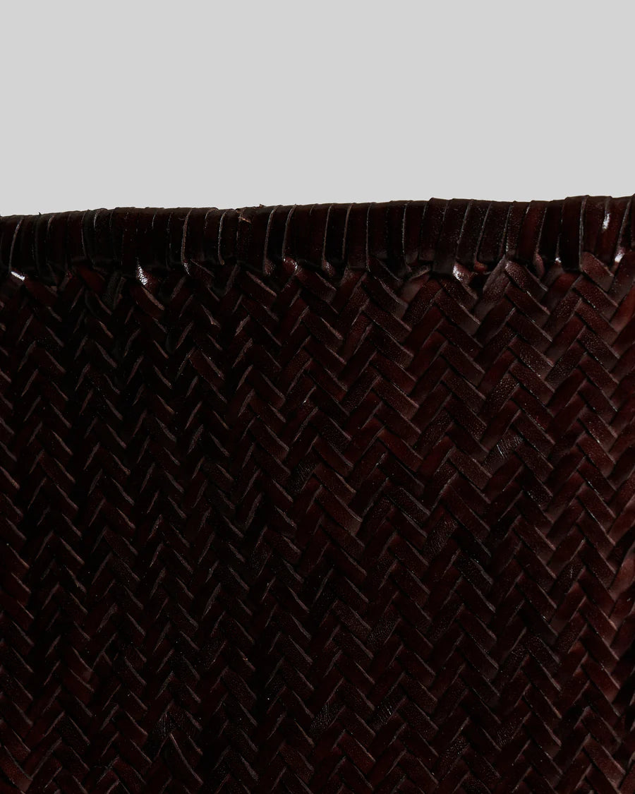 Großzügige, handgeflochtene Ledertasche in tiefem Chocolate-Ton. Gefertigt in Italien überzeugt sie mit markanter Flechtstruktur, klarer Silhouette und luxuriöser Handwerkskunst – ideal für Alltag und Reise.
